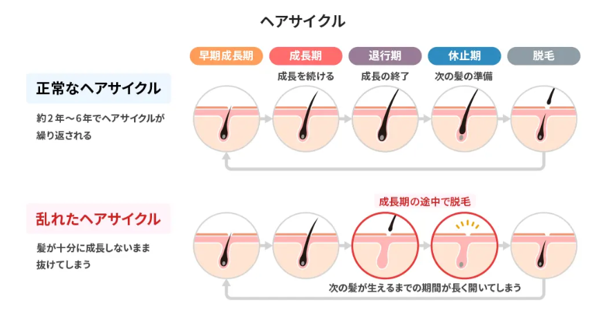毛髪の成長周期が短くなり、
